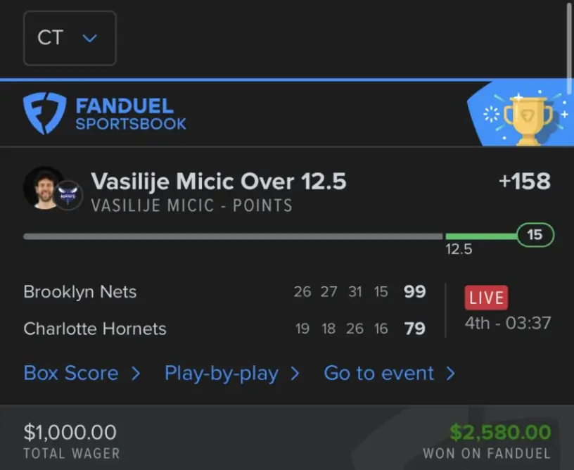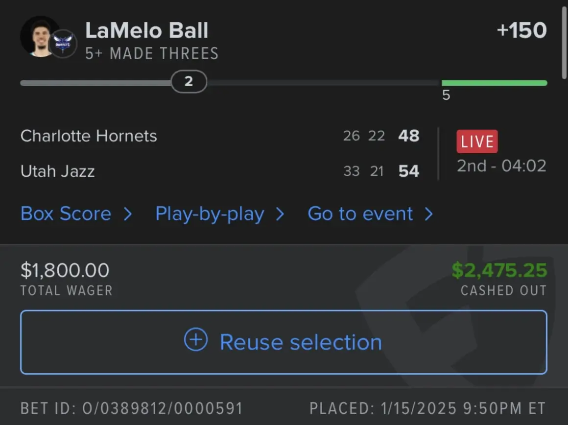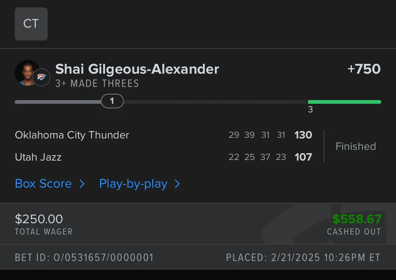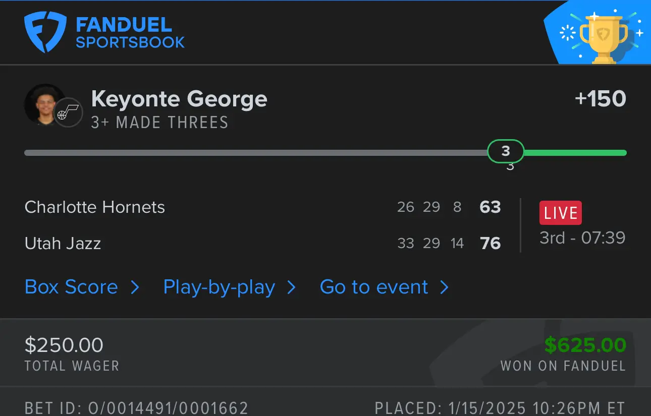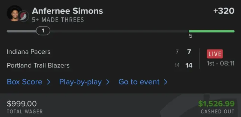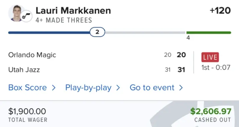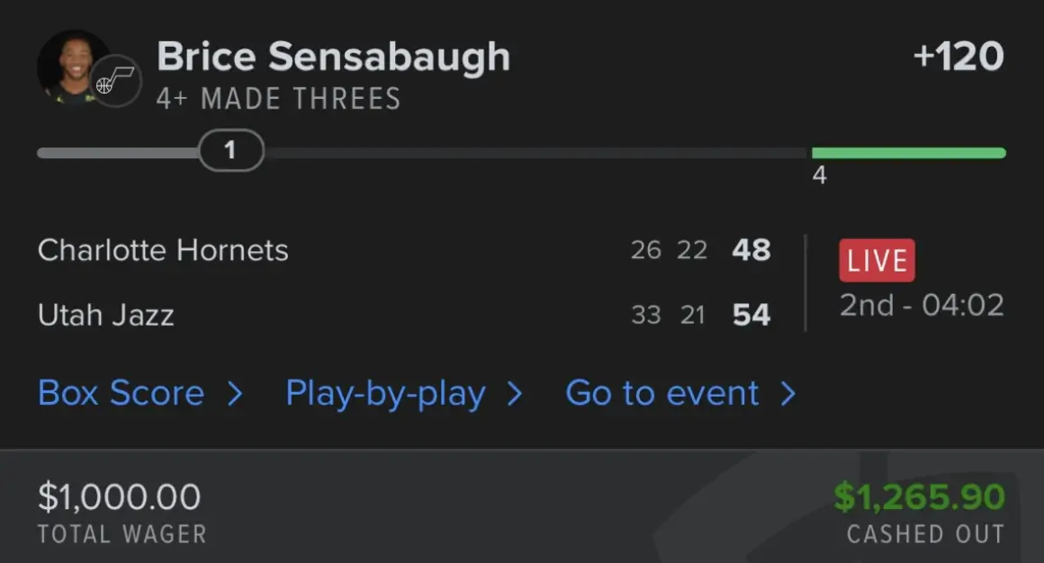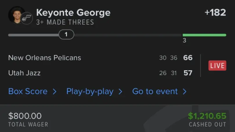 Join the call and wait for our announcer to say when an NBA player has scored a 3-pointer. (At this point, we know about it, but the sportsbooks don't.